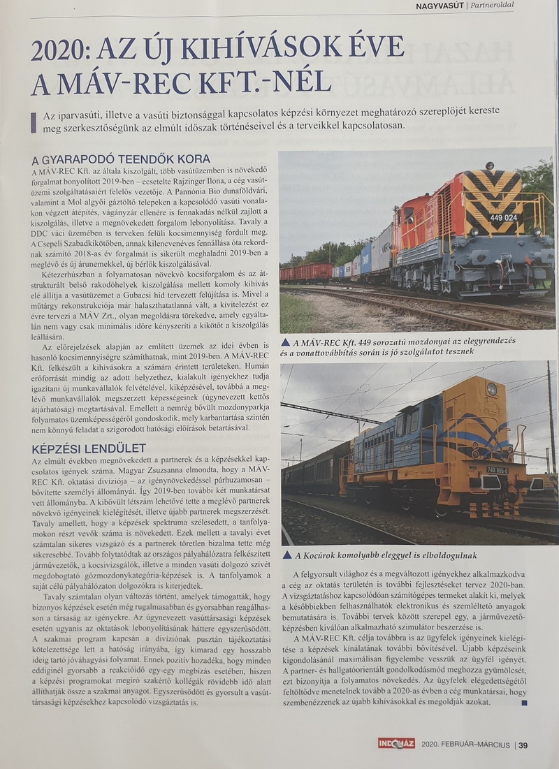 A MÁV-REC Kft. az Indóház februári számában